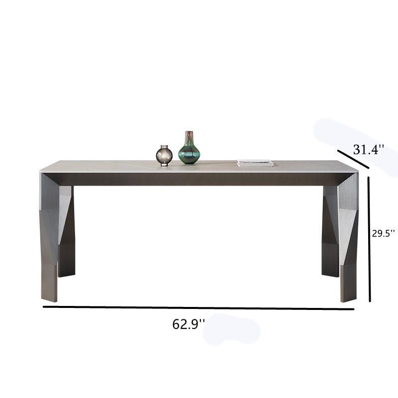 This dining table brings a modern and chic look to any space. The white bright slate table top is located on the black stainless steel base, adding a light and airy effect to your home decoration. The rectangular table is very suitable for large spaces or conversation areas inside and outside the home.